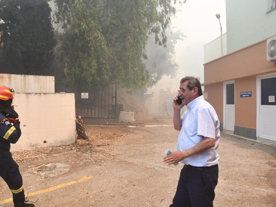 Στη μεγάλη πυρκαγιά που μαίνεται στην περιοχή του Γηροκομειού βρίσκεται από την πρώτη στιγμή της εκδήλωσης, η Δημοτική Αρχή με επικεφαλής τον Δήμαρχο Πατρέων, Κώστα Πελετίδη.