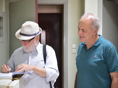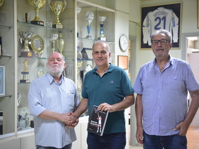Στο πλαίσιο της συνάντησης ο συγγραφέας Κυριάκος Σκιαθάς πρόσφερε στην Κυπριακή αποστολή το βιβλίο του «Ο Νουρέγιεφ του μπάσκετ», αφιερωμένο στον Κώστα Πετρόπουλο.