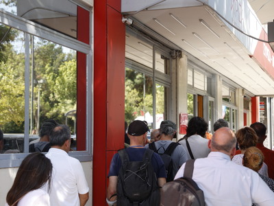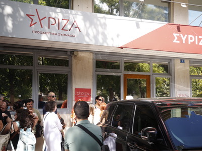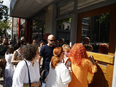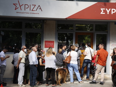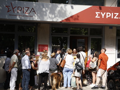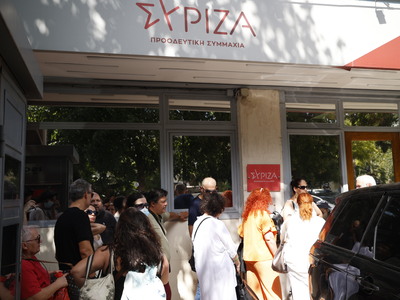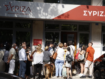 Ουρές σχηματίζονται έξω από τα γραφεία του ΣΥΡΙΖΑ Προοδευτική Συμμαχία στην οδό Κουμουνδούρου από πολίτες που έχουν κλείσει ραντεβού προκειμένου να δουν τον Πρόεδρο του κόμματος Στέφανο Κασσελάκη.