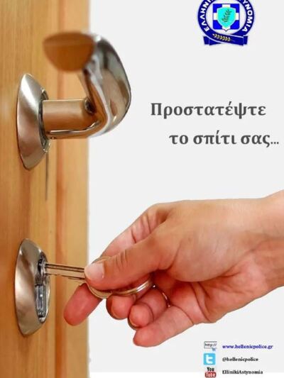 -Πριν φύγετε για διακοπές βεβαιωθείτε ότι οι πόρτες και τα παράθυρα του σπιτιού σας είναι καλά ασφαλισμένα.