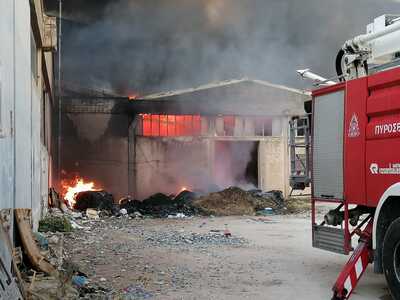 Οι ζημιές είναι μεγάλες ενώ λόγω του θερμικού φορτίου κατέρρευσε η στέγη του εργοστασίου