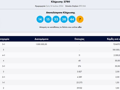 Πραγματοποιήθηκε η κλήρωση Τζόκερ με αριθμό 2780 το βράδυ της Τρίτης (16/7)