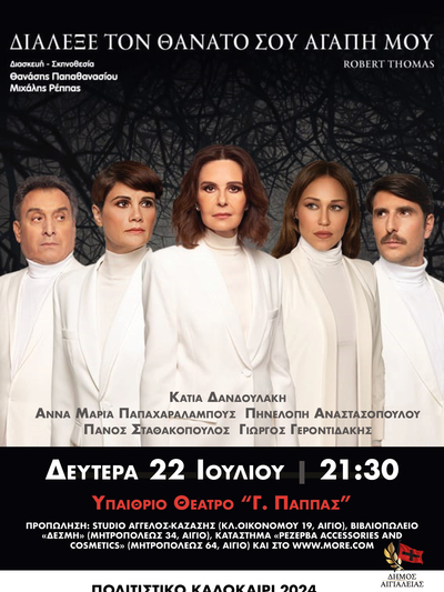 Η παράσταση θα παιχθεί στο υπαίθριο θέατρο «Γεώργιος Παππάς» στο γειτονικό Αίγιο την Δευτέρα 22 Ιουλίου 2024.
