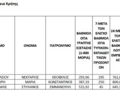 Δείτε παρακάτω τους πίνακες που δημοσιοποίησε το ΑΣΕΠ με την τελική τριάδα: