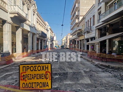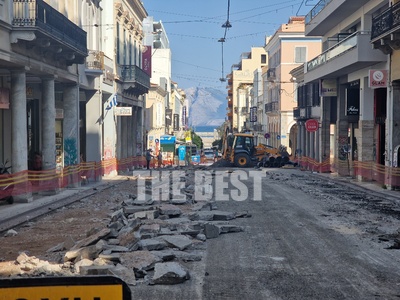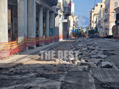 Η πρόοδος των εργασιών στην Μαιζώνος, στο ύψος της πλατείας Εθν. Αντιστάσεως