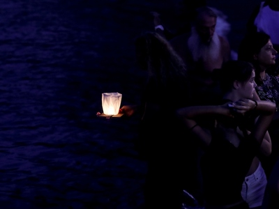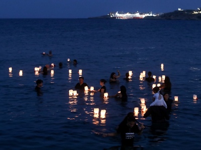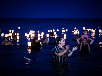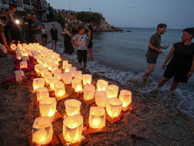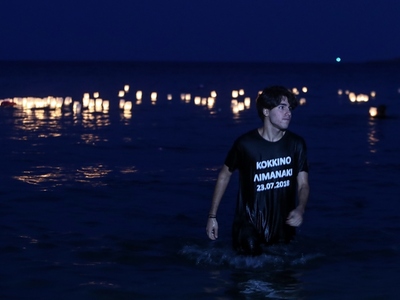 Οι συγγενείς άναψαν 104 φαναράκια τα οποία «απελευθέρωσαν» στη θάλασσα στη μνήμη των θυμάτων.