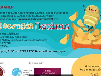 Διοργανώνει την Παρασκευή 2 Αυγούστου 2024 το “2ο Festival Πατάτας - Ερυθρά Γαία 2024” στο Terra Rossa στη παραλία Λακκόπετρας, ώρα 21:30