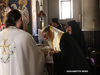 Το ιερό λείψανο μετέφερε στο ιστορικό μοναστήρι των Καλαβρύτων ο σεβασμιότατος Μητροπολίτης Κηφισίας, Αμαρουσίου, Ωρωπού και Μαραθώνος κ. Κύριλλος