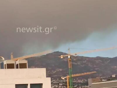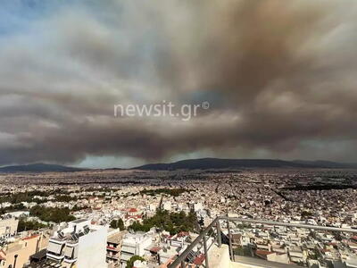 Μία συνηθισμένη, δυστυχώς, εικόνα αντικρίζουν οι κάτοικοι πολλών περιοχών στην Αττική από τους πυκνούς καπνούς που έχουν καλύψει τον ουρανό από την μεγάλη φωτιά στον Βαρνάβα.