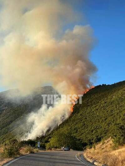 Η φωτιά εκδηλώθηκε κάτω από άγνωστες μέχρι στιγμής συνθήκες και ήδη καίει πυκνή βλάστηση. Η φωτιά καίει σε ορεινή περιοχή και δεν απειλεί κατοικημένη περιοχή.