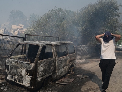 Η πυρκαγιά έχει επεκταθεί σε περιοχές της Πεντέλης, των Βριλησσίων, του Γραμματικού, του Διονύσου, του Μαραθώνα και συνεχίζει την καταστροφική πορεία της, ενώ η ατμόσφαιρα στην Αττική είναι αποπνικτική, με μαύρους καπνούς να έχουν σκεπάσει τον ουρανό.