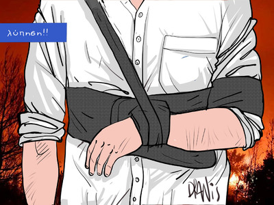 Το τραυματισμένο χέρι του Κικίλια με το πενάκι του Dranis