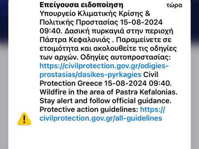 Σε εξέλιξη βρίσκεται φωτιά στην περιοχή Πάστρα Κεφαλονιάς με το υπουργείο Πολιτικής Προστασίας να στέλνει μήνυμα 112 στους κατοίκους να βρίσκονται σε ετοιμότητα.