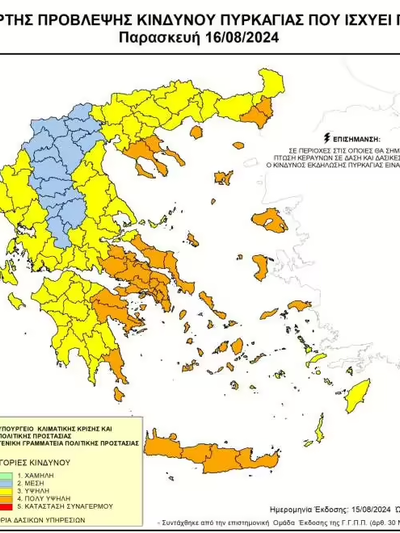 Υψηλός ο κίνδυνος εκδήλωσης πυρκαγιάς την Παρασκευή 16 Αυγούστου.