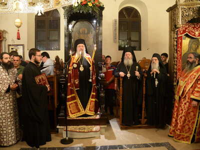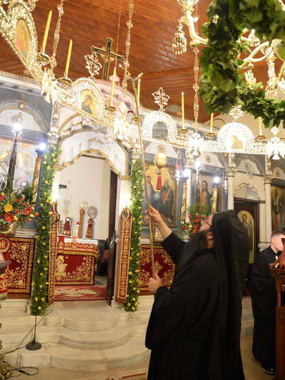 Ἂλλος οὐρανός ἀνεδείχθη γιά μιά ἀκόμη φορά τό Καθολικό τῆς Μονῆς μέ τήν ἀέναη παρουσία τῆς ἲδιας τῆς Πλατυτέρας τῶν οὐρανῶν καί τῶν Ἀγγελικῶν ταγμάτων, συμπάσης τῆς οὐρανίου χοροστασίας καί μέ τήν παρουσία τοῦ Μητροπολίτου Πατρῶν κ.κ. Χρυσοστόμου, ὁ ὁποῖος ἐχοροστάτησε στόν Ἑσπερινό καί στόν Ὂρθρο καί προέστη τῆς Θείας Λειτουργίας κατά τήν Ἱερά Ἀγρυπνία, τήν συγχοροστασία στόν Ἑσπερινό καί λειτουργική παρουσία τοῦ Θεοφιλεστάτου Ἐπισκόπου Κερνίτσης κ. Χρυσάνθου, στήν πρωϊνή Θεία Λειτουργία, τῇ συμμετοχῇ τοῦ Καθηγουμένου τῆς Ἱερᾶς Μονῆς, Ἀρχιμ. π. Συμεών Χατζῆ καί τῶν Ἀδελφῶν τῆς Μονῆς, Ἱερέων τῆς Μητροπόλεως Πατρῶν, Ἀρχόντων τοῦ Λαοῦ καί πλήθους πιστῶν.
