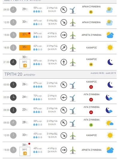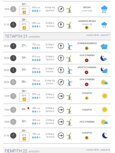 Στην Αττική περιμένουμε λίγες νεφώσεις, παροδικά αυξημένες μετά το μεσημέρι. Οι άνεμοι θα πνέουν από νότιες διευθύνσεις με εντάσεις 3-4 μποφόρ. Η θερμοκρασία θα κυμανθεί από 27 έως 35 βαθμούς.