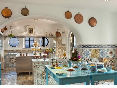 Oλα τριγύρω αντιπροσωπεύουν την rustic elegance της περιοχής. Σύμφωνα άλλωστε με σημαντικά περιοδικά διακόσμησης το λεγόμενο Amalficore είναι πλέον πολύ επιδραστικό διεθνώς. Βασίζεται στη γοητεία των παραδοσιακών χρωματιστών κεραμικών και των ζωγραφισμένων πιάτων, σε εκτυφλωτικά μπλε και κίτρινα, στα στοιχεία του μεσογειακού πράσινου, της θάλασσας και των λεμονιών. Παλιά αναπαλαιωμένα έπιπλα και vintage μωσαικά έχουν εδώ την τιμητική τους.