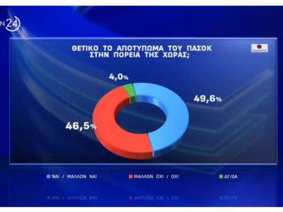 Μοιρασμένες είναι οι απαντήσεις και στην ερώτηση αν το ΠΑΣΟΚ θα μπορούσε να αποκτήσει κυβερνητική προοπτική, με το 50,4% να απαντάει ναι και το 45,3% να απαντάει όχι.