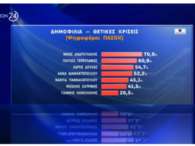 Πρώτος σε δημοφιλία εμφανίζεται ο Νίκος Ανδρουλάκης με ποσοστό 70% ωστόσο η πλειοψηφία πιστεύει ότι ο Χάρης Δούκας είναι ο πιο κατάλληλος από όλους για να αντιμετωπίσει τον Κυριάκο Μητσοτάκη: