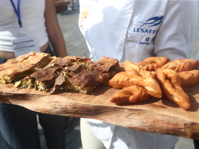 Αμέσως μετά τον αγιασμό ο πρωθυπουργός συναντήθηκε αρχικά με το Διοικητικό Συμβούλιο της ΔΕΘ-HELEXPO και στη συνέχεια περιηγήθηκε στα περίπτερα της 88ης ΔΕΘ. Το πρώτο έδεσμα που δοκίμασε ήταν κολοκυθόπιτα που του προσέφερε η Εθνική Ομάδα Αρτοποιείας. Η ομάδα τού έκανε μια παρουσίαση της Μακεδονικής κουζίνας, όπως πίτες και φυσικά κουλούρι Θεσσαλονίκης και τους είπε «θα πάρω και μια κολοκυθόπιτα για μέσα».