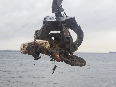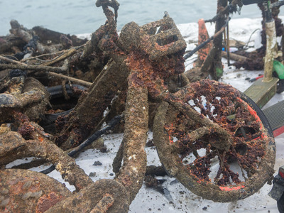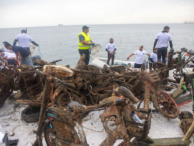 Μάλιστα προς το τέλος του καθαρισμού, εντοπίστηκε και ανασύρθηκε από τον βυθό του Θερμαϊκού και ένα μηχανάκι!