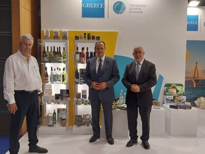 Επίσης, ο κ. Μαρλαφέκας επισκέφθηκε και το περίπτερο 6 stand 4 της Περιφέρειας Δυτικής Ελλάδας, όπου επίσης φιλοξενούνται τα προϊόντα ακόμη εννέα επιχειρήσεων της Αχαΐας και εξέφρασε την ικανοποίησή του για τη συνεργασία των επιχειρήσεων που και στην 88η ΔΕΘ έδωσαν το στίγμα της Αχαΐας στην Θεσσαλονίκη. Συγκεκριμένα, παρουσιάζονται εκεί προϊόντα των αχαϊκών επιχειρήσεων : 1) ΓΙΑΛΟΥΣΗΣ Ι. ΕΠΕ, 2) ΑΛΑΜΠΑΣΥΝΗΣ ΘΕΟΔΩΡΟΣ, 3) FUNDELINA, 4) PILAVAS, 5) Γιώργος Ντάνος – AMMOUSA μπύρα, 6) TWO OLIVES, 7) Αφοί Παπαδόπουλοι ΟΕ (CARAVEL ΖΑΧΑΡΟΠΛΑΣΤΕΙΑ), 8) KOTROTSOS FINE WINES, 9) ΟΙΝΟΙ ΛΑΡΙΣΣΟΣ -Κτήμα Μαυρόγιαννη.