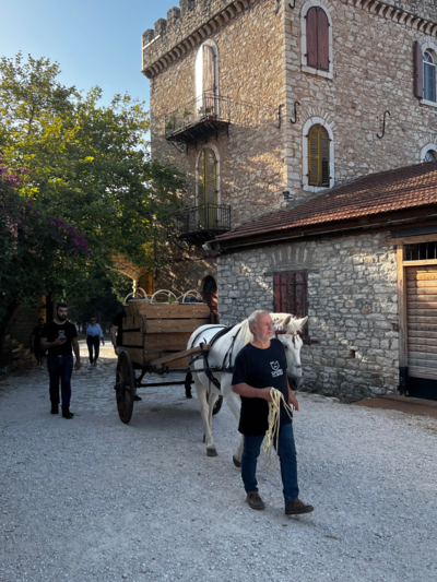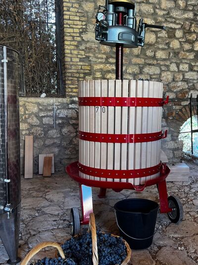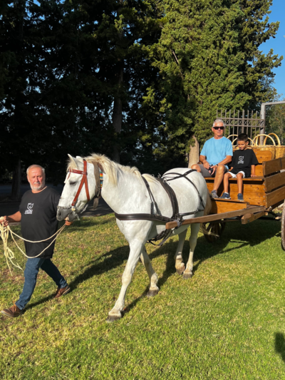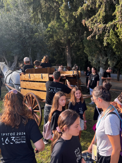Τα καλάθια γέμισαν με τα τσαμπιά της Μαυροδάφνης και φορτώθηκαν στο κάρο που το σέρνει το άλογο μας ο περήφανος Τσίλιας με τελικό προορισμό την ταινία διαλογής και το πατητηρι.Εκει με τις οδηγίες των οινολόγων έγινε η επεξεργασία των σταφυλιών, γέμισε η στροφιλιά και ακολούθησε το πάτημα των σταφυλιών.