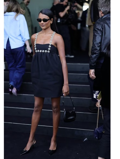 Η 29χρονη που μας ξεσήκωσε στο Netflix χάρη στον έρωτά της με τον ωραίο υποκόμη Αντονι, γοήτευσε αναμφίβολα στην Εβδομάδα Μόδας του Μιλάνου παρακολουθώντας την Prada Spring Summer Collection 2025. Γεννήθηκε στη Βρετανία αλλά έχει ινδική καταγωγή. To χαριτωμένο mini dress αποκάλυψε τα ψηλά και λυγερά πόδια της προκαλώντας καταιγισμό φλας.