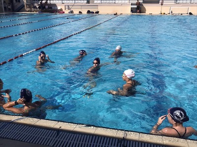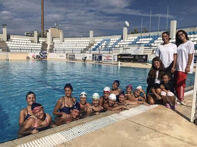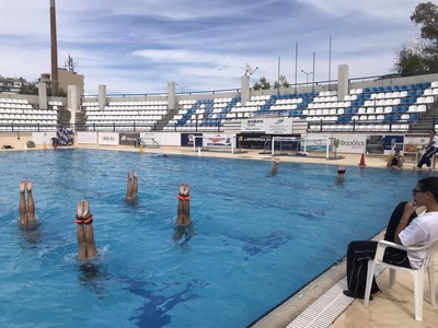 Τα κορίτσια της καλλιτεχνικής κολύμβησης του ΝΟΠ με τις δασκάλες τους, Φένια Αγγελοπούλου και Ηλιάνα Καπότση στην καθημερινή τους προπόνηση (15:00-17:00) στην ανοικτή πισίνα.