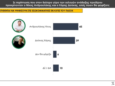 Από την άλλη όπως προκύπτει ο Ανδρουλάκης προηγείται στις εσωκομματικές εκλογές στο ΠΑΣΟΚ την ώρα που είναι ντέρμπι η ανάλογη διαδικασία στον ΣΥΡΙΖΑ.