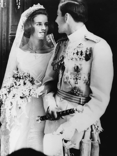 Τη νύφη θα συνοδεύσει στο ναό ο μεγαλύτερος αδελφός της Παύλος. Το νυφικό της με την υπογραφή της διεθνούς φήμης Ελληνίδας couturier Celia Kritharioti, είναι εμπνευσμένο από εκείνο που φόρεσε η μητέρα της στην ίδια εκκλησία 60 χρόνια πριν.