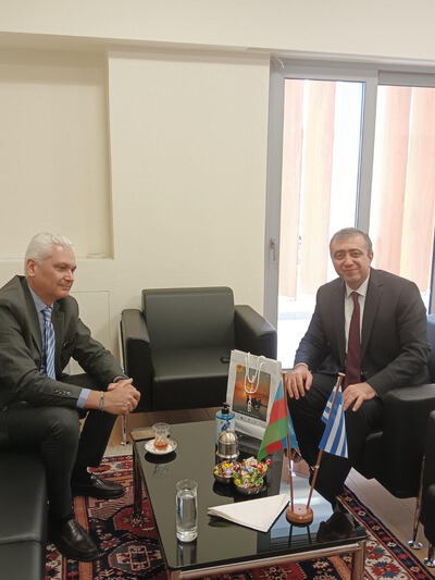 Ο Αντιπεριφερειάρχης Π.Ε. Αχαΐας, Πρόεδρος της Επιτροπής Βαλκανίων & Ευξείνου Πόντου της CPMR, Φωκίων Ζαΐμης, συναντήθηκε πρόσφατα στην Αθήνα με τον Πρέσβη του Αζερμπαϊτζάν, Arif Mammadov και την Πρέσβη της Αλβανίας, Luela Hajdaraga.