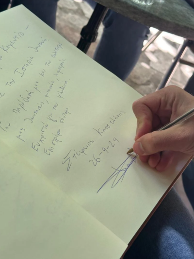 Κρατήστε την Ιστορία Ζωντανή. Την παράδοσή μας και τον πολιτισμό μας ζωντανούς, φωτεινούς, λαμπερούς. Ευχαριστώ για την φιλοξενία. Επιστρέφω σύντομα», έγραψε ο Στέφανος Κασσελάκης.
