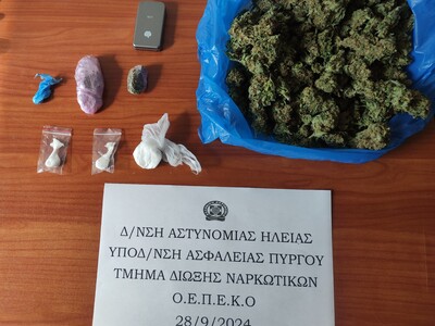 Ειδικότερα, οι αστυνομικοί της Ειδικής Ομάδας Ελέγχων της Διεύθυνσης Αστυνομίας Ηλείας, εντόπισαν τον κατηγορούμενο να κινείται με αυτοκίνητο και σε έλεγχο που του ενήργησαν βρήκαν στην κατοχή του και κατάσχεσαν 11,4 γραμμάρια κάνναβης και τρεις συσκευασίες, που περιείχαν 3,1 γραμμάρια κοκαΐνης.