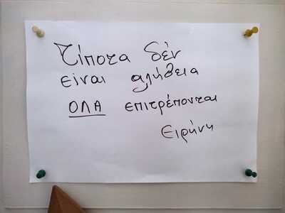 Υ. Γ : Το χαρτί που φαίνεται στην φωτογραφία το είδα σήμερα το πρωί πίσω από την πόρτα του εργαστηρίου της. Η άλλη φωτογραφία είναι με τον παιδικό της φίλο Xρήστο Καμίση".