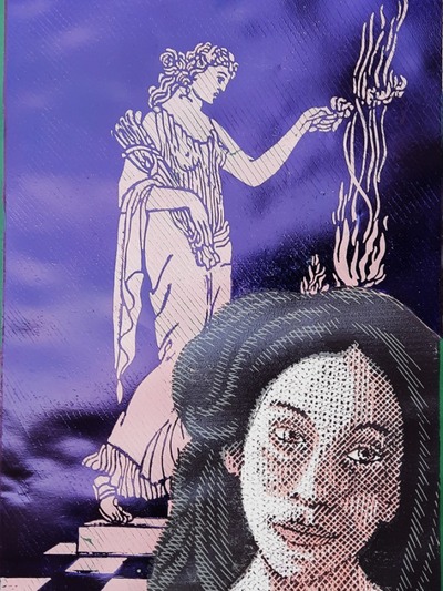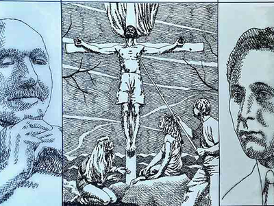 Ειδικά για την έκθεση δημιουργήθηκε ένα έργο – τρίπτυχο, με πορτρέτο του Έλληνα συγγραφέα Νίκου Καζαντζάκη, την εικόνα μιας σύγχρονης σταύρωσης, καθώς και πορτρέτο του Τσέχου συνθέτη Μπόχουσλαβ Μαρτινού, ο οποίος συνέθεσε στη δεκαετία του 1950 την όπερα “Ελληνικά Πάθη” εμπνευσμένη από το βιβλίο του Καζαντζάκη "Ο Χριστός ξανασταυρώνεται". Δημιουργώ έγχρωμα λινογραφικά έργα με μια περίπλοκη τεχνική έγχρωμων εντυπώσεων, όπου κάθε χρώμα έχει τη δική του ξεχωριστή μήτρα και η εκτύπωση γίνεται σταδιακά. Το τελικό έργο περιλαμβάνει έναν διαφορετικό αριθμό χρωμάτων - συνήθως γύρω στα 10 χρώματα, αν και δεν λείπουν τα έργα που μπορεί να φτάνουν έως και τα 30 χρώματα.”.