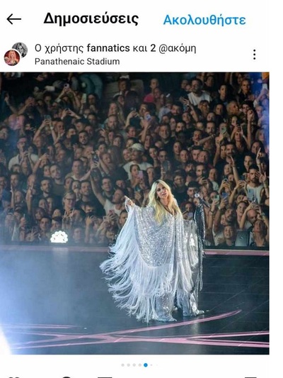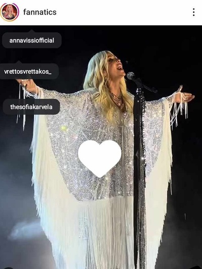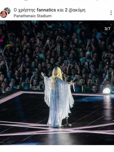 Το διαδίκτυο γέμισε στιγμιότυπα από την πρωτόγνωρη, σε απήχηση, συναυλία. Μάλιστα τα θεαματικά πλάνα από πάνω του κατάμεστου σταδίου έκαναν αίσθηση… Όμως και ενδυματολογικά η αγέραστη performer έκανε θραύση. Η κόρη της Σοφία Καρβέλα, στυλίστρια και fashion expert με έδρα τη Νέα Υόρκη, επέλεξε για εκείνη ένα κυριολεκτικά εκθαμβωτικό outfit.