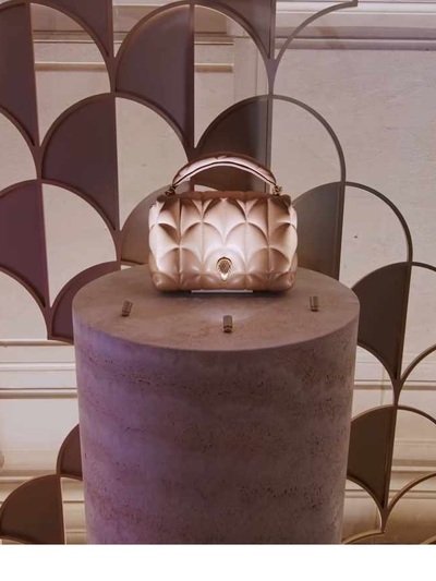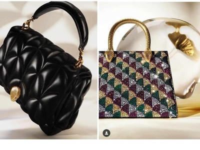 O σχεδιασμός σε αυτές τις Bulgari bags βασίζεται στο μοτίβο της βεντάλιας, το οποίο πρωταγωνιστεί στα ψηφιδωτά των αρχαίων Terme di Caracalla (Λουτρά του Καρακάλλα) στη Ρώμη. Αποτυπώνεται στο κλασικό δέρμα matelassé αλλά και σε επιφάνειες γεμάτες κρύσταλλα…