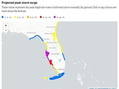Σε γράφημά του το NBC καταγράφει τις προβλέψεις των μετεωρολόγων για άνοδο της στάθμης των υδάτων έως και 4,5 μέτρα στην περιοχή της Τάμπα, η οποία αναμένεται να χτυπηθεί περισσότερο από τον Μίλτον.