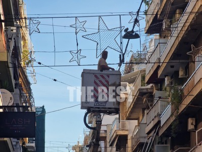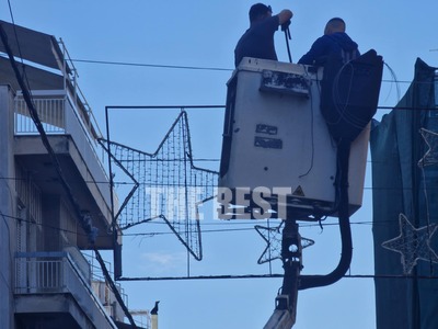 Τοποθετείται ο γιορτινός χριστουγεννιάτικος διάκοσμος
