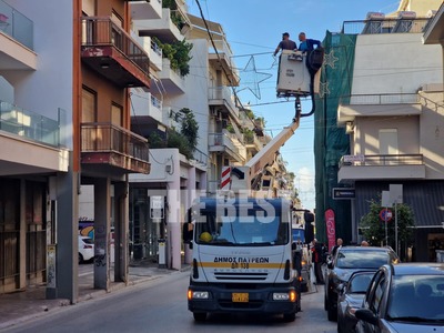 Εδώ και περίπου μια εβδομάδα τα συνεργεία ηλεκτροφωτισμού του δήμου Πατρέων έχουν ξεκινήσει να τοποθετούν τους γιορτινούς φωτο-σωλήνες πάνω από τους κεντρικούς δρόμους της αχαϊκής πρωτεύουσας.
