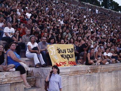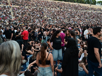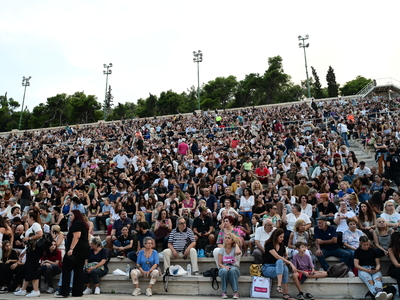 Ξεκίνησε η μεγάλη συναυλία στη μνήμη των 57 θυμάτων του σιδηροδρομικού δυστυχήματος των Τεμπών στο Καλλιμάρμαρο Παναθηναϊκό Στάδιο.