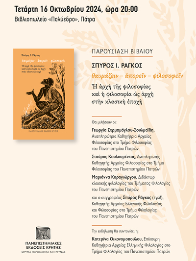 Η αρχή της φιλοσοφίας και η φιλοσοφία ως αρχή στην κλασική εποχή» του Σπύρου Ι.Ράγκου, που κυκλοφορεί από τις Πανεπιστημιακές εκδόσεις Κρήτης.