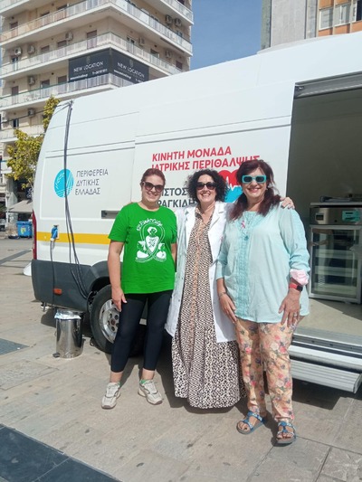 Από τις 8 έως και τις 12 Οκτωβρίου πραγματοποιήθηκε πενθήμερη κλινική εξέταση μαστού σε συνολικά 7 βάρδιες για τον γενικό πληθυσμό, στην Κινητή Μονάδα Υγείας της Γενικής Διεύθυνσης Δημόσιας Υγείας και Κοινωνικής Μέριμνας της Περιφέρειας Δυτικής Ελλάδας, στην Πλατεία Γεωργίου.