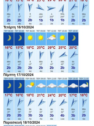 ΠΡΟΓΝΩΣΗ ΓΙΑ ΤΗΝ ΤΕΤΑΡΤΗ 16-10
