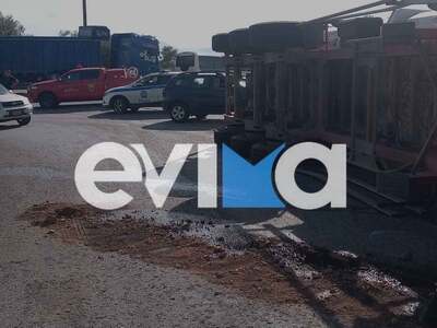 Τροχαίο ατύχημα με εκτροπή νταλίκας σημειώθηκε το μεσημέρι της Δευτέρας (14/10) στην Εύβοια.