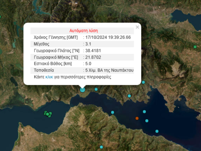 Σεισμική δόνηση 3.1 Ρίχτερ σημειώθηκε στη Ναύπακτο. Είχε εστιακός βάθος 5 χιλιομέτρων.