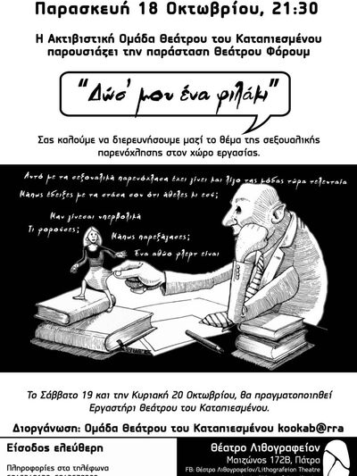 Στις 9.30 το βράδυ στο Λιθογραφείον με ελεύθερη είσοδο, από την ακτιβιστική Ομάδας Θεάτρου του Καταπιεσμένου kookab@rra