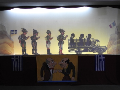 Οι ήρωες του θεάτρου σκιών, ο Καραγκιόζης λοχίας, ο Μπαρμπαγιώργος δεκανέας, ο Χατζηαβάτης, ο Σιορ-Διονύσιος και όλη η διμοιρία με τους λαϊκούς ήρωες παρακολουθούν με αγωνία τις εξελίξεις, ντύνονται στο χακί και συμμετέχουν στα γεγονότα που διαδραματίστηκαν το 1940.