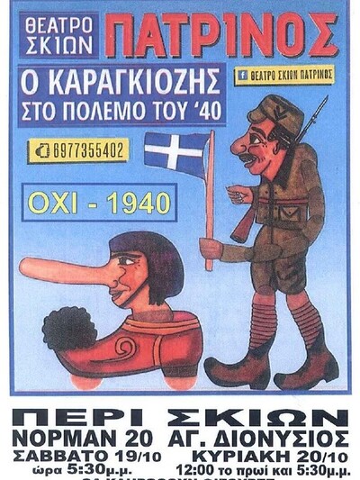 Την επετειακή παράσταση με τίτλο «Το ιστορικό ΟΧΙ και ο Καραγκιόζης στον πόλεμο του 40» θα παρουσιάσει στο κοινό ο καραγκιοζοπαίχτης Χρήστος Πατρινός στο "Περί Σκιών" στα πλαίσια του εορτασμού της 28ης Οκτωβρίου.